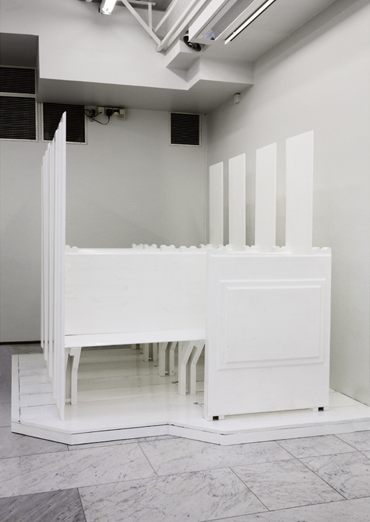 Päättyy maahan matkan päässä. Veistos, Kluuvin galleria, Helsinki, 2011.