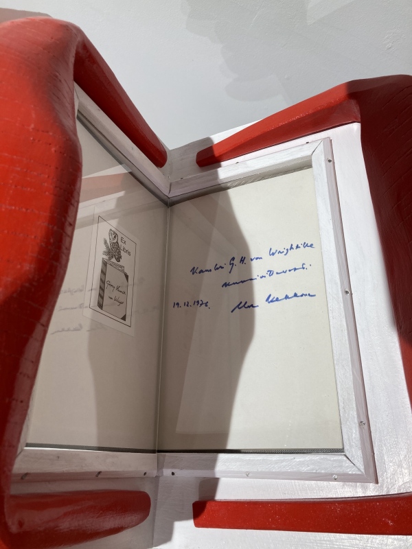 Urho Kekkonen (1900-1986): Kirjeitä myllystäni 1-2, Otava, 1976, 1.p., skp., joissa molemmissa osissa tekijän omiste: "Kansleri Georg Henrik von Wrightille, kunnioittavasti, 19.2.1976, Urho Kekkonen".