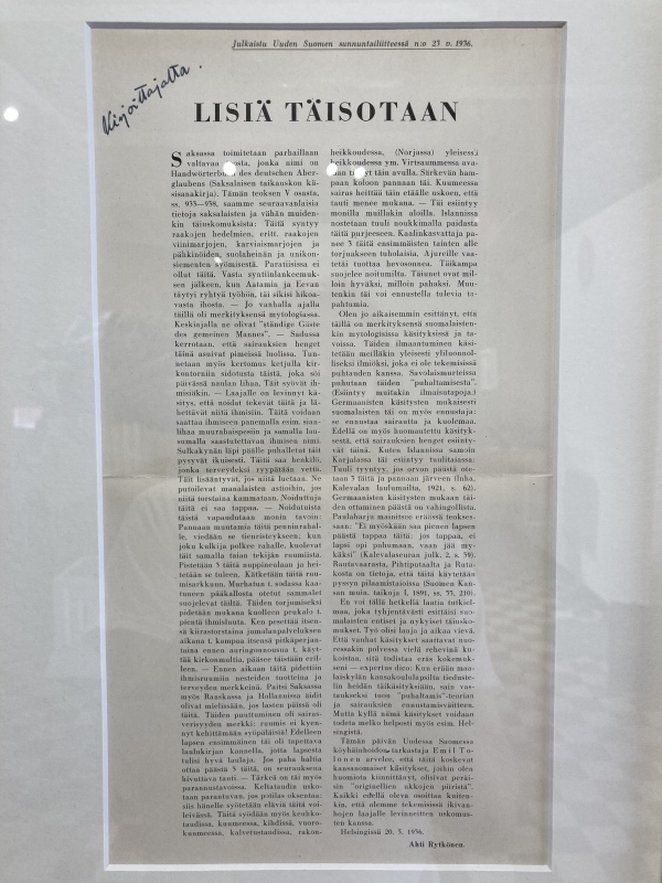 Ahti Rytkönen (1899-1989): Lisiä täisotaan, 1936, jossa tekijän tervehdys: "Kirjoittajalta.".