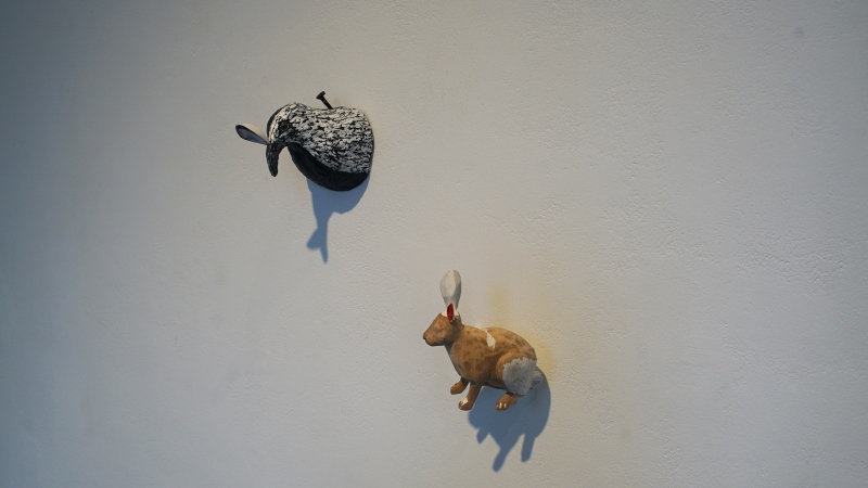 The exhibition showcases sculptures with a variety of subjects. Animals, comments on fine art, a certain musical and photographic tone, as well as an ever-present and lurking death are on display.