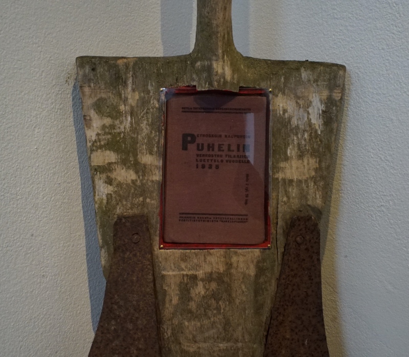 "Petroskoin kaupungin Puhelin verkoston tilaajien luettelo vuodelle 1935, SNTL:n Yhteysasioiden Kansankomisariaatti, julkaisija Kasnt:n Yhteyshallinnon Postitietotoimisto "Karelspravka" (toiseen suuntaan sama venäjäksi)".
