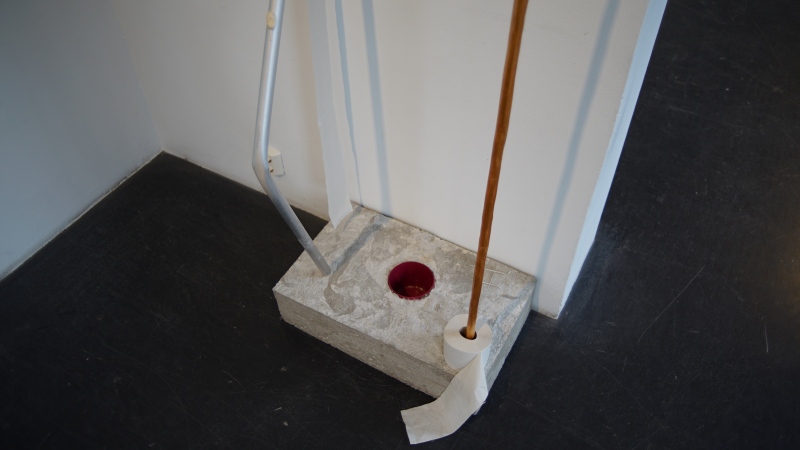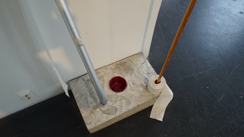 CONTEMPORARY PIECE 2010s - 2020s (latrine) / NYKYPALA 2010 - 2020 - LUKU (käymälä), 2022, betoni, metalli, puu, muovi, purkka, vessapaperi