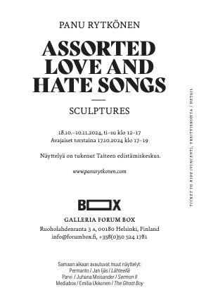 ASSORTED LOVE AND HATE SONGS – SCULPTURES (OVERVIEW 6 / YLEISNÄKYMÄ 6), 2024, FORUM BOX,