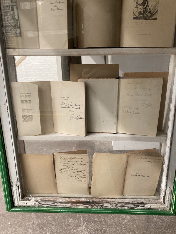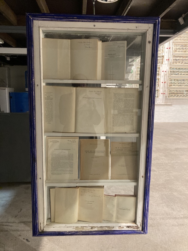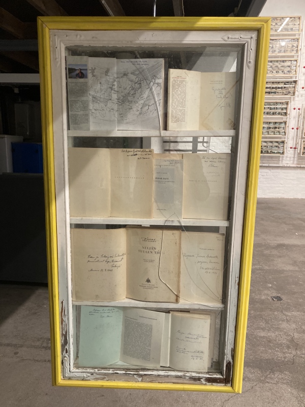 Sisältää neljä vanhoista ikkunoista tehtyä vitriiniä, jotka roikkuvat kettingillä katosta ja joista jokaista kiertää yksi Saamen lipussa oleva väri. Yksi ikkunalasi on rikki, kuvastamassa asioiden nykyistä tilaa. Vitriinien sisällä on Lappiin ja Saamenmaahan liittyvää harvinaista ja erikoista kirjallisuutta, joissa jokaisessa on tekijän omiste.