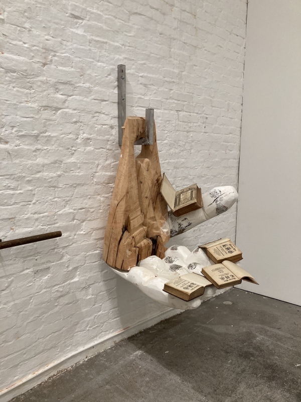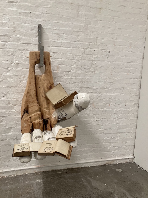 10. Sledgehammer (sort of), 2024, puu, rauta, vanhat lakikirjat