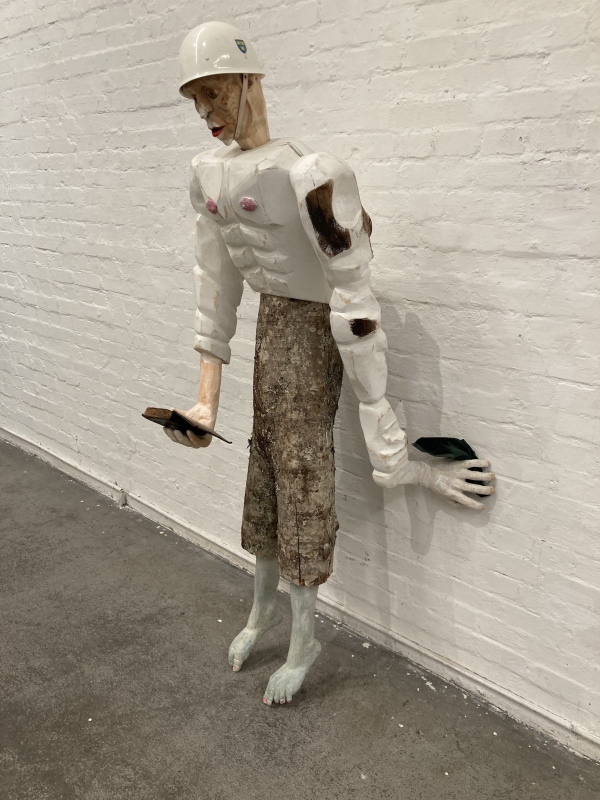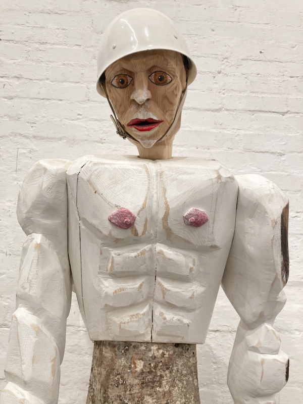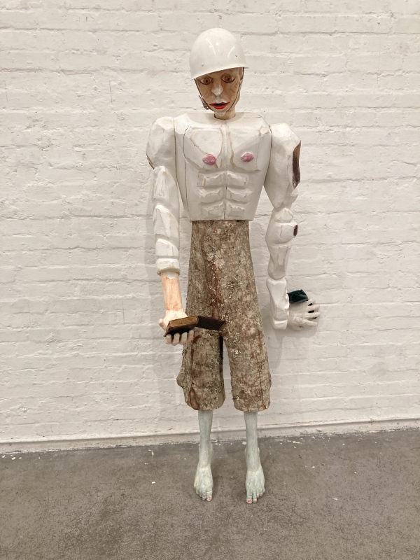 13. Suomen metsän poika turvallisissa tiloissaan, 2024, puu, kypärä ja kirja