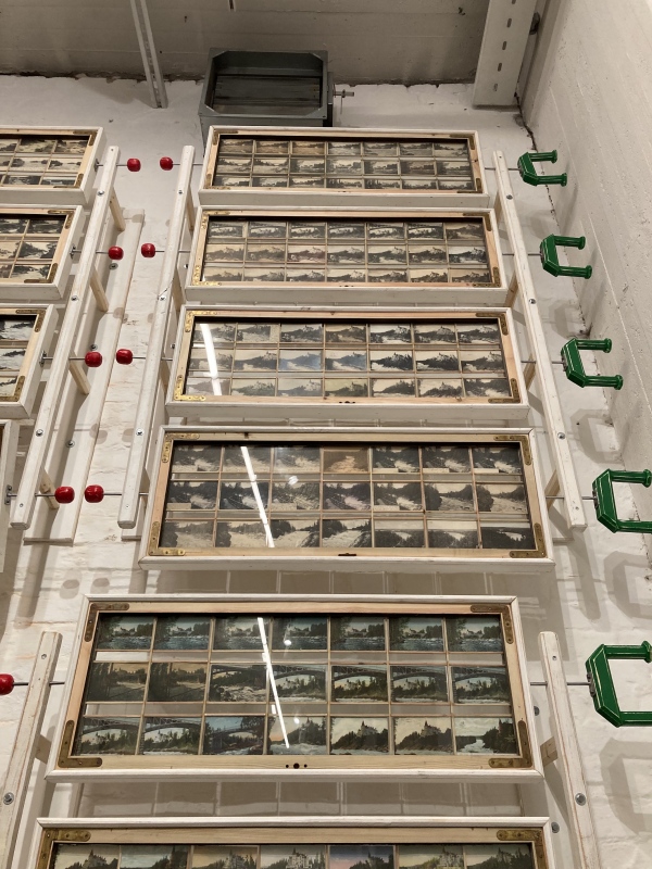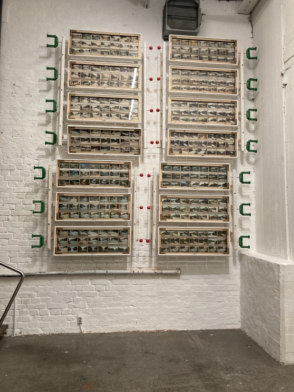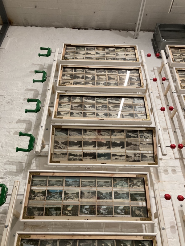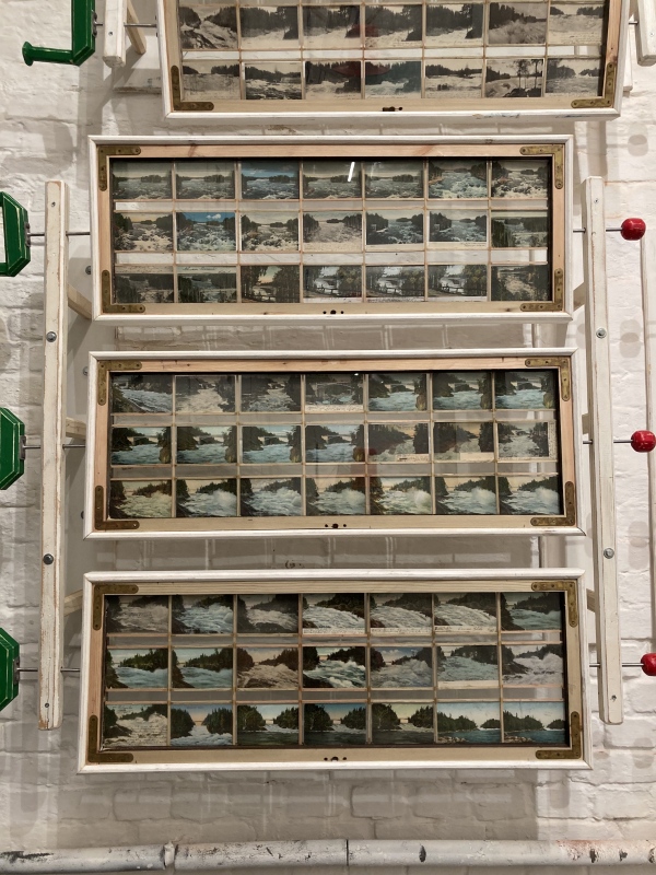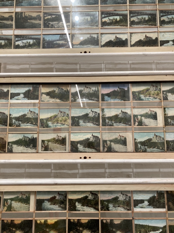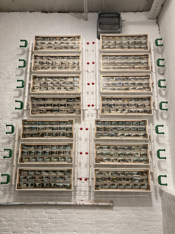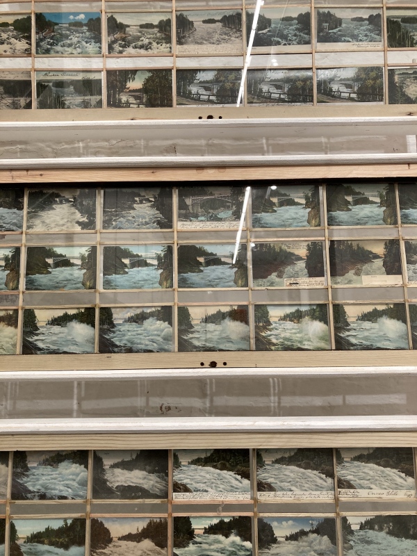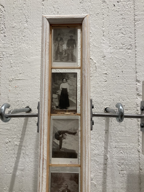 3. River (free), 2024, puu, lasi, rauta ja vanhat postikortit