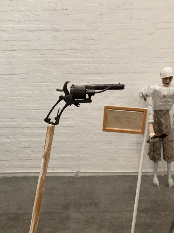 Ase muistuttaa varsin paljon sitä mikä löydettiin noin 1960 (ja huutokaupattiin 2019) siltä pellolta, jolla paikalla Vincent van Gogh väitetysti ampui itseään 1890. Aseen yhtäläisyyttä on hyvä korostaa tässä. Tehkää internet-haku ”Vincent van Gogh gun” ja verratkaa kuvista.