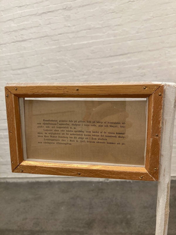 Lotteriet afser icke mindre spridning inom landet af de vunna konstalstren, än möjligheten att för nettovisten kunna inköpa det konstverk skulptören Herr Walter Runeberg har för afsigt att I Rom utarbeta.